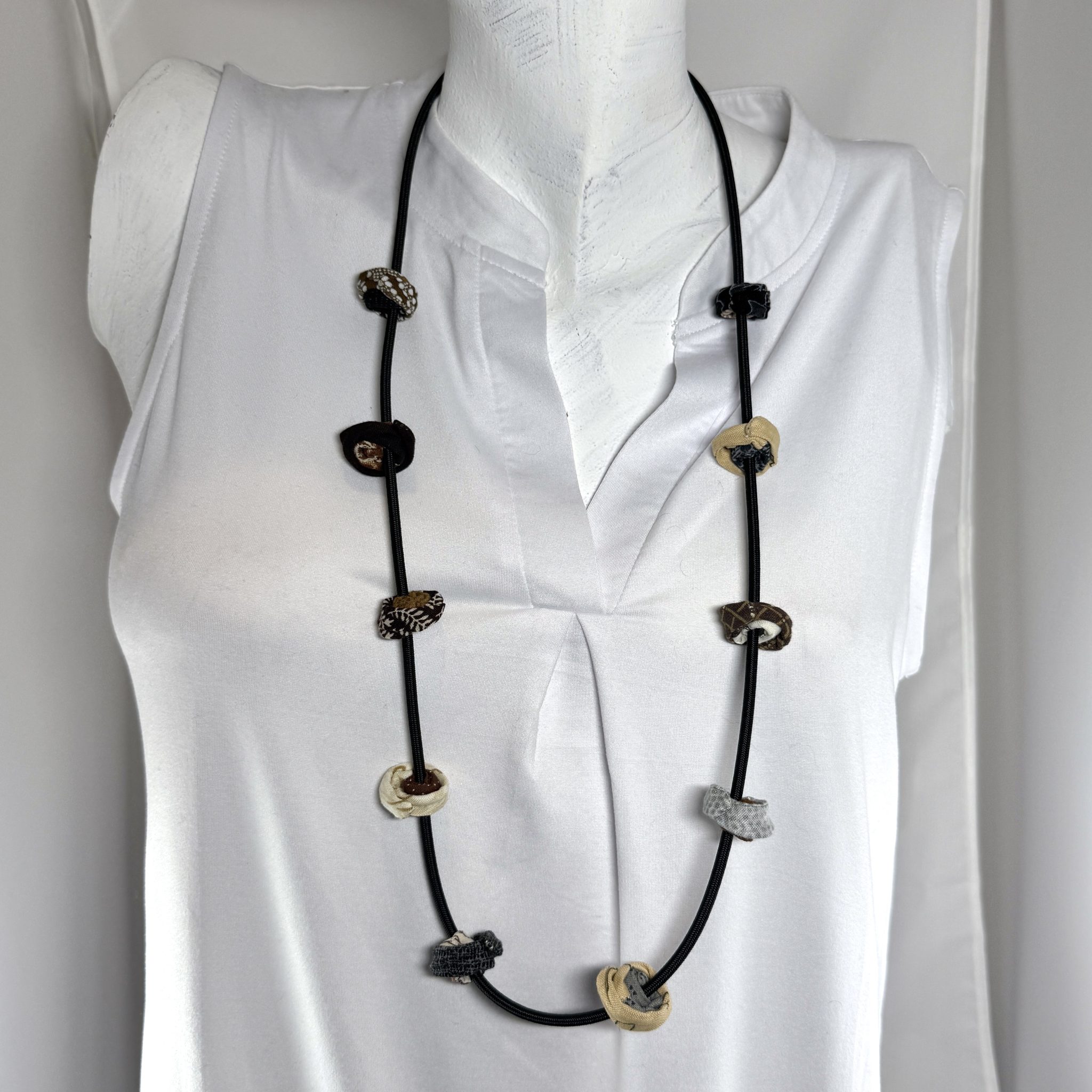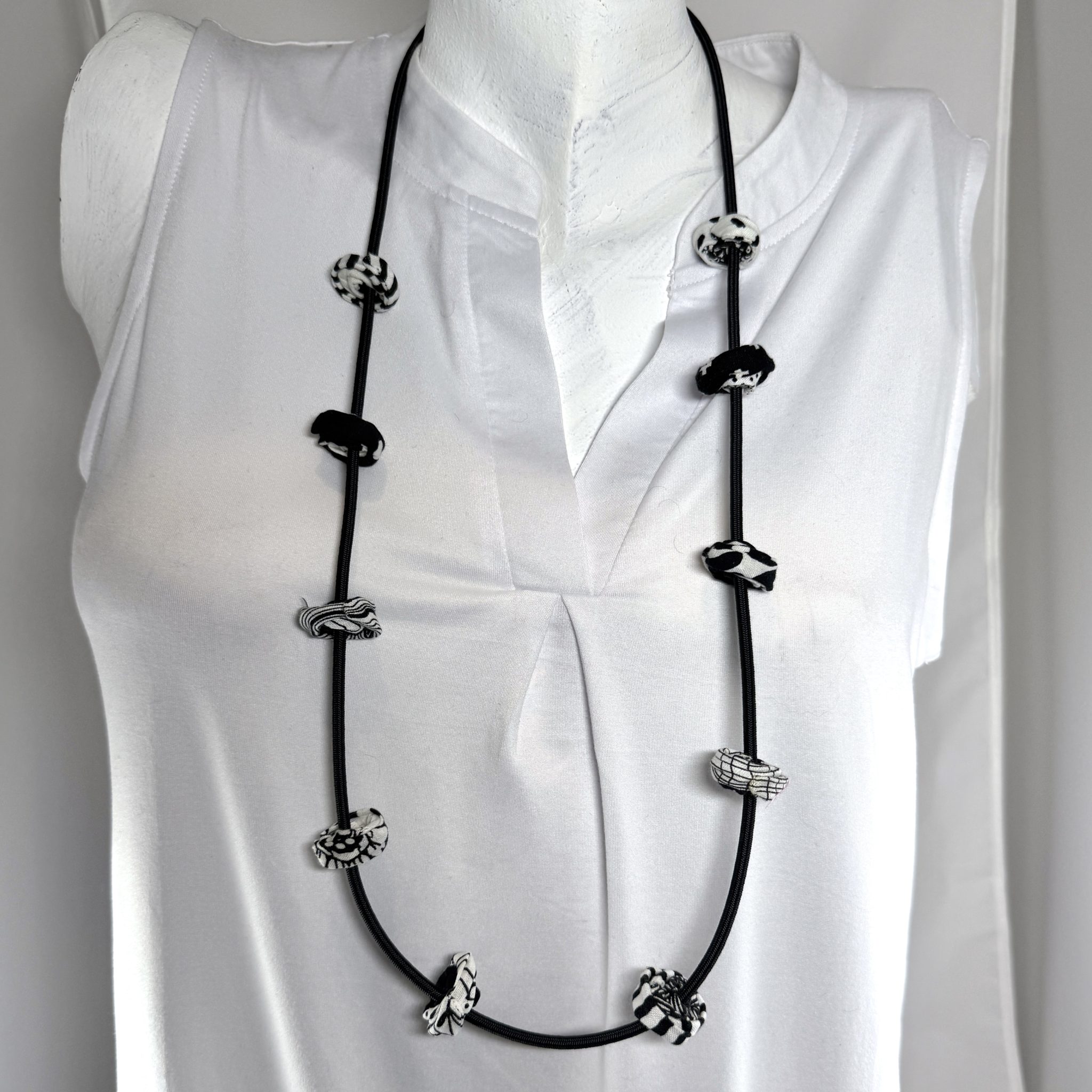 Our new Chunky Millefiori Slider on bungee is shorter and sportier! It features multi-colored millefioris and a fixed back neck that makes it easy to toss on!