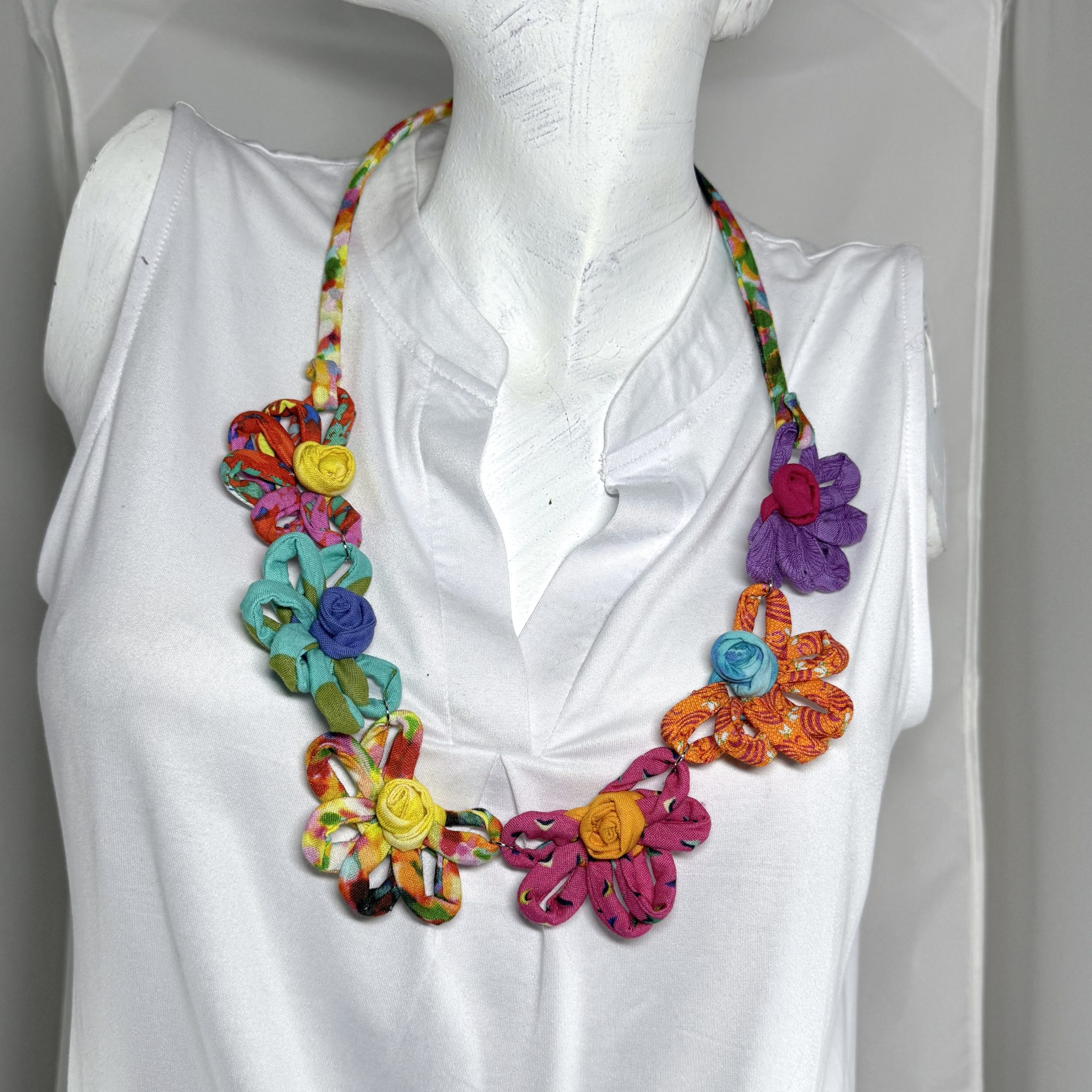 A sextet of lovely coneflowers hang from an adjustable and coordinating Ficklesticks neck cord. Almost like a little garden party around your neck! Wear with anything.